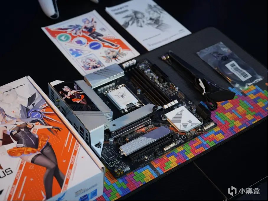 配件给的比较齐全,包括了一副带磁吸底座的WiFi 6E天线,两条SATA数据线和一张雕妹贴纸。