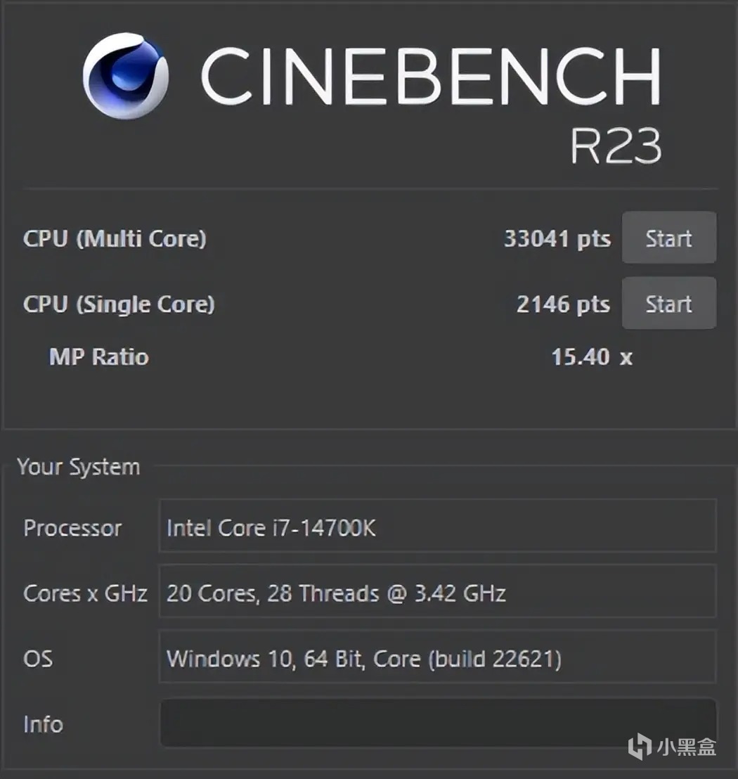 国际惯例,CPU默认状态跑个R23,多核33041,单核2146,比起上代对位产品13700K多核高出3000分,单核高出100分,提升比较可观。