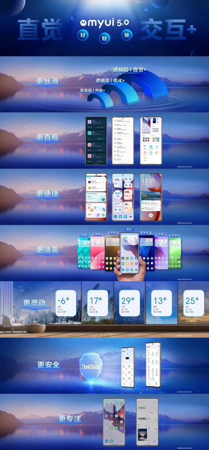 软件方面,moto X40 搭载MYUI 5.0,号称拥有“直觉交互 +”,在外观、交互、底层、安全性等方面都进行了改进。