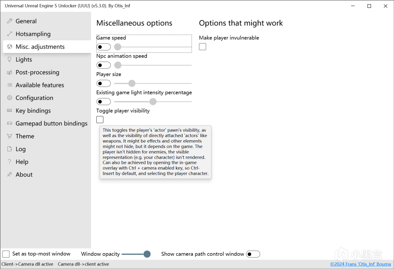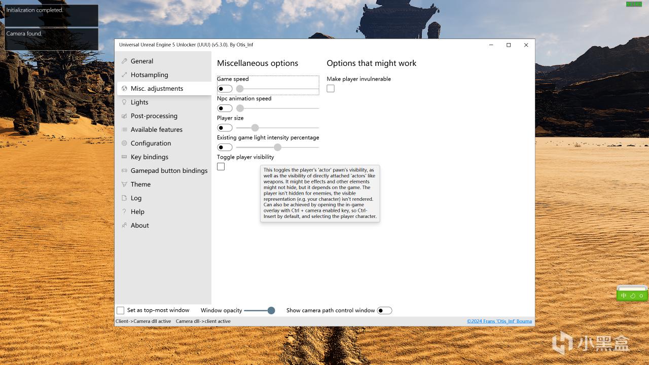 然后点击如图所示的选项“toggle player visibility”,这个选项将隐藏悟空的角色模型,使其变透明。
