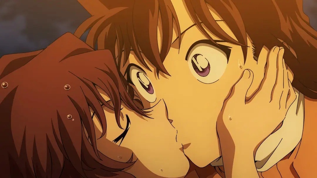 但是吧,青山岡昌就是個畫青梅竹馬的,他懂個勾八柯南——而現在連青梅竹馬都兜不住了。比如在《黑鐵的魚影》裏讓新蘭黨沉默、柯哀黨狂喜的「世紀之吻」:你以爲是這樣的?