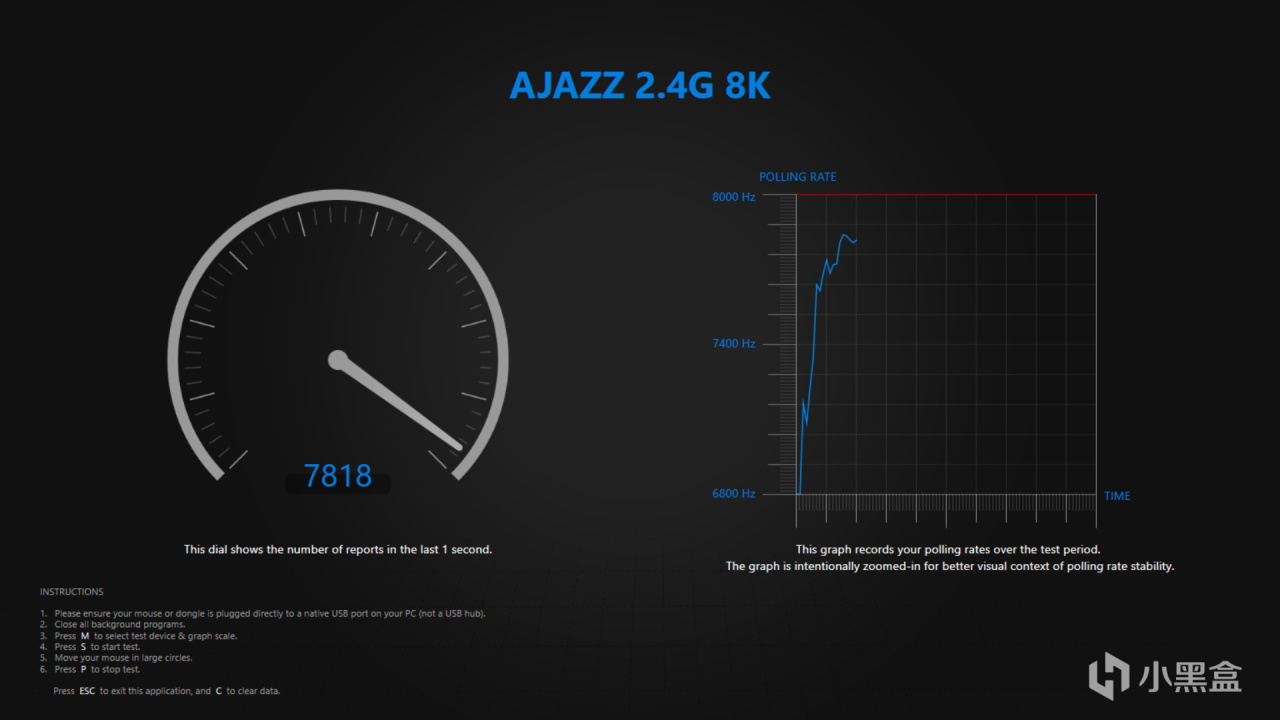 最后就是鼠标驱动了,APEX版本的充电底座和鼠标的设置是在两个界面,页面比较简洁,可以调节DPI、回报率、抬起高度等等,也可以调节充电底座的小屏幕设置,操作都比较方便,然后就是鼠标高回报率以及轨迹,8K回报率是完全没有问题的,鼠标轨迹方面,1K、2K都是完全ok的,4K和8K因为所用插帧技术问题,轨迹就不太好看了,不过现在都是这个样子,所以我在日常使用的时候并不过分要求高回报率,平时最多开4K。