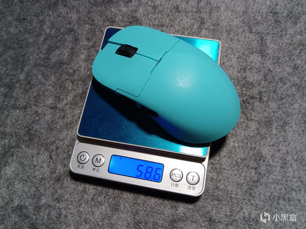 鼠标的重量方面,实测是58g左右,作为一个非打孔、普通材质的鼠标,在保证外壳强度的前提下,这个重量是非常正常的,而且58g也是蛮轻量化的。