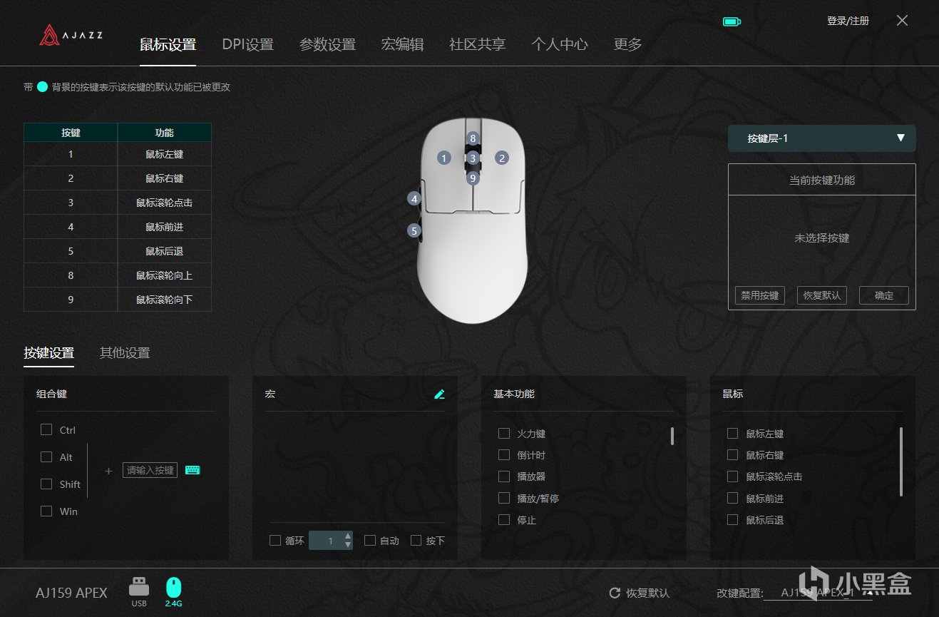 哈喽,大家好,这里是打个锤子,也是蛮长时间没有碰过新鼠标了,现在提起鼠标,得益于公版旗舰级传感器的解禁,除去特殊材质,300价位的国产鼠标市场已经是3950传感器的天下了,各大厂商纷纷开始卷模具、卷重量以及卷配件,现在各个厂商普遍也都开始做磁吸无线充电底座,外观都大同小异,为了差异化和多样性,黑爵AJ159采用的是类XM模具,并且最高配的底座也是做了一个小彩屏,那么接下来详细说一下这款鼠标——黑爵AJ159APEX。