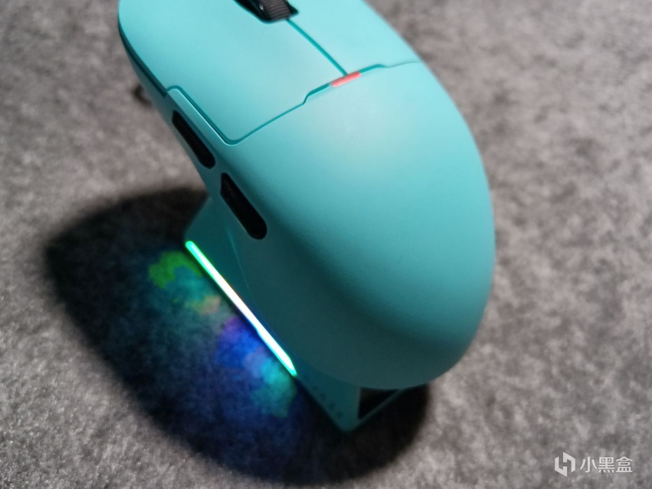 APEX以下版本的接收器都是nano接收器,而APEX版本的8K接收器是做到了标配的彩屏磁吸充电底座里,对于高回报率的使用大家仁者见仁,底座正面是做了一个正方形的小彩屏,上面可以显示时间、DPI、回报率以及抬起高度,所以我觉得还是有点用处的,同时也可以在驱动中设置动图,就比如鸡哥跳舞什么的,后方紧挨着Type-C接口的按钮可以用来切换小屏幕界面,作为一款磁吸充电底座也是照惯例在侧面的底部做了两条灯带,底部做了一个用以控制灯效的按钮,并且做了用来固定的底胶,鼠标磁吸固定效果还是很不错的,并且充电过程也比较稳定。