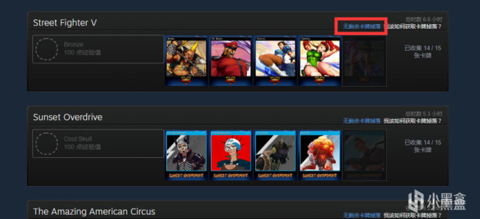 如果你想查閱某個遊戲是否還能掉落卡牌,可進入徽章頁面查看。