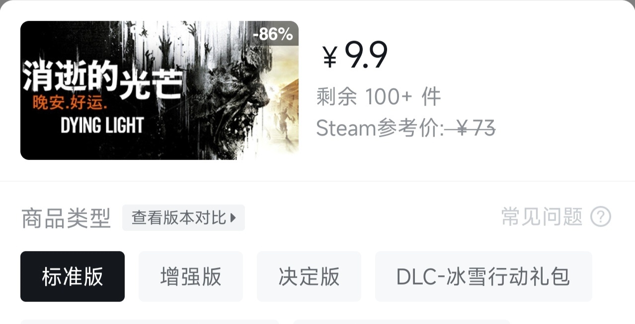 消逝的光芒1標準版僅需9.9!