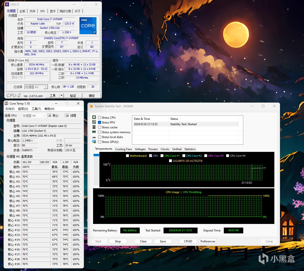 CPU选择的是酷睿I7 14700KF处理器,这块主板供电部分采用了12+1+1相 Duet Rail CPU 智能供电方案,PWM主控芯片为瑞萨RAA229132,每相供电都配备了独立的DrMos,第三代钛金电感,最大供电电流为75A,配置相当豪华,能保证处理器发挥出极致的性能。