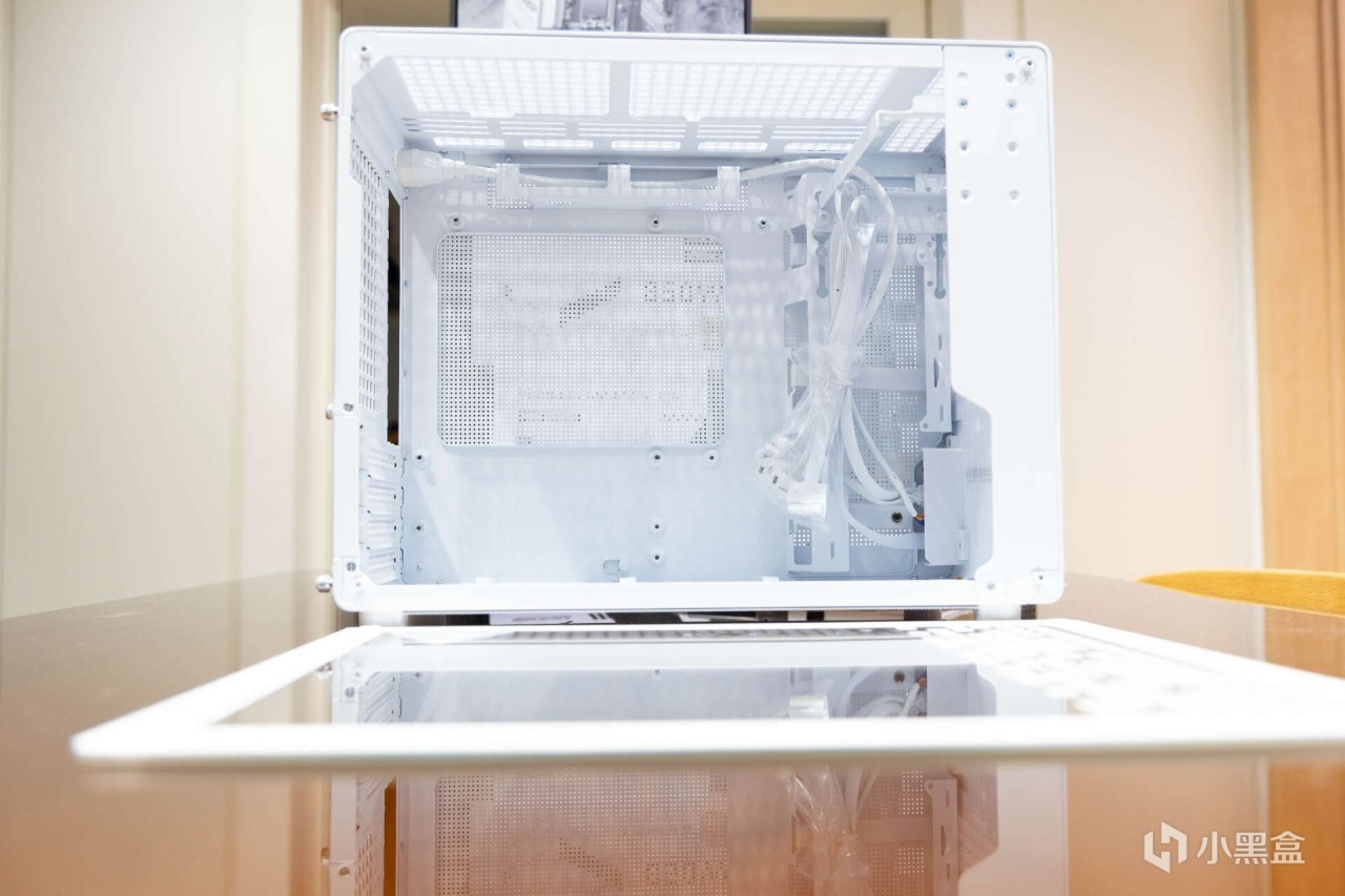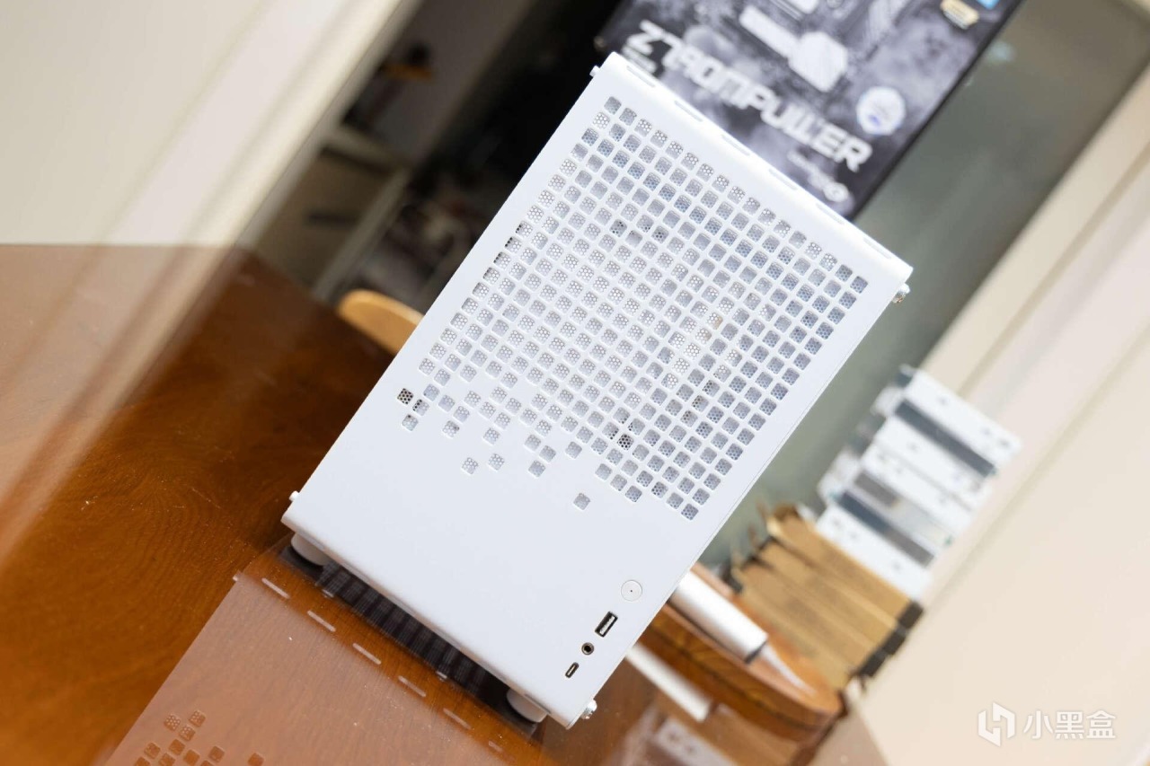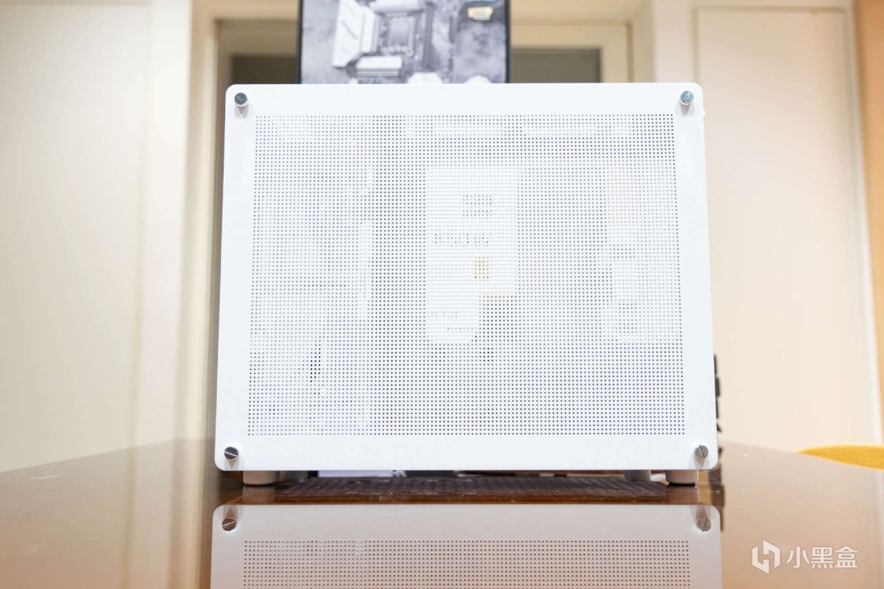 机箱的右侧设置的是整块MESH网眼面板,进一步优化了小机箱的散热表现。