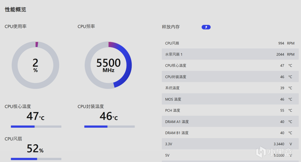 散热器表现方面,在室温27摄氏度的环境下,14700KF待机温度保持在47摄氏度左右,利民Peerless Assassin 120 MINI WHITE绝双刺客对处理器的压制非常有效。