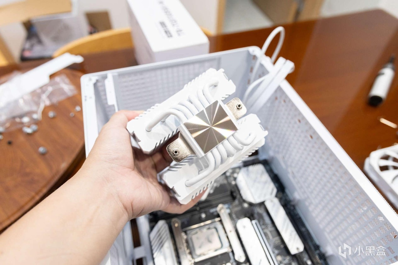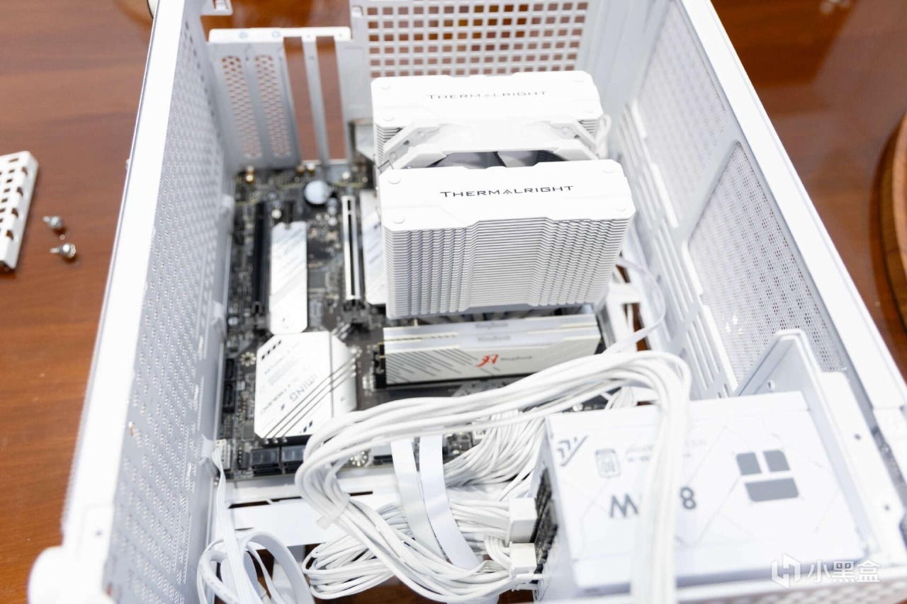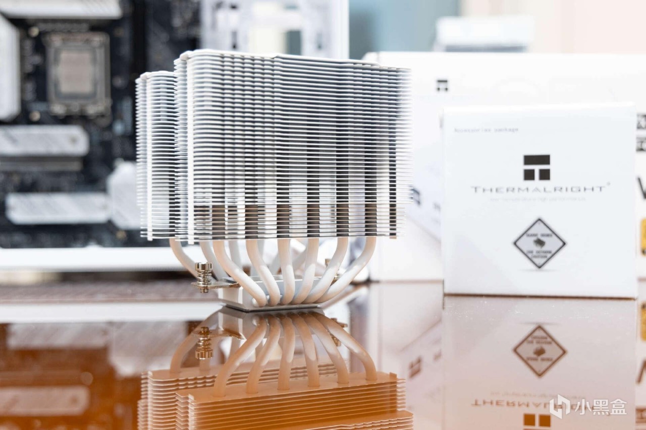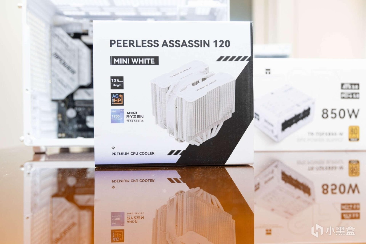 散热器方面,选择的是利民Peerless Assassin 120 MINI WHITE绝双刺客,后面简称利民120 Mini。这款散热器配置了第四代逆重力热管技术,双塔六热管构架,TDP功耗约为200W,已经支持最新INTEL1851和AMD AM5平台。
