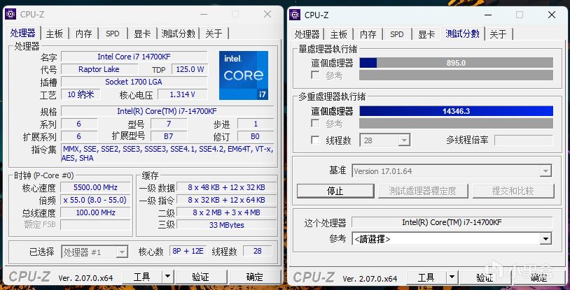 处理器跑分成绩,单核896分,多核14346分。