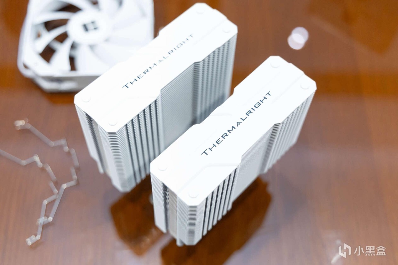 散热塔双塔的顶部都做了立体造型的顶盖,并且可以看到醒目的Thermalright利民LOGO。