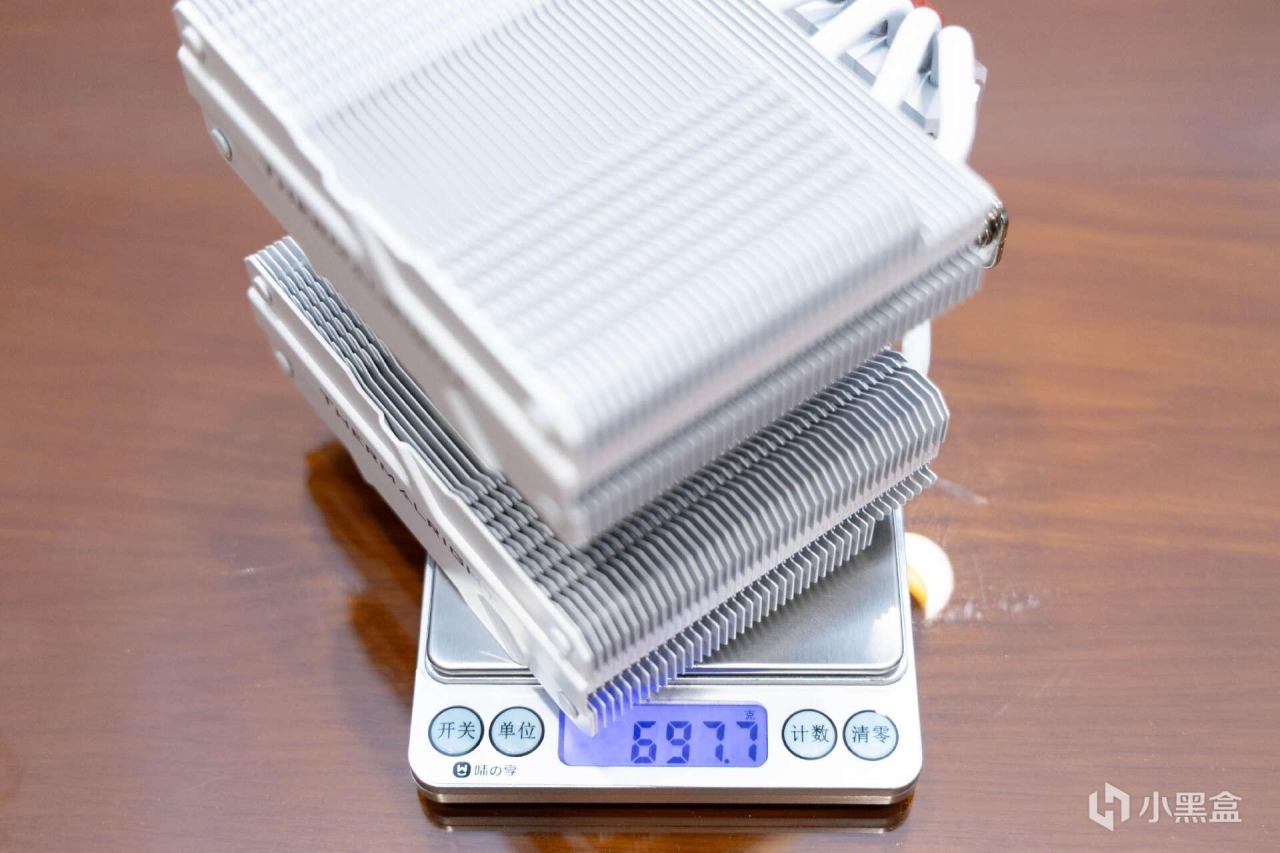 散热塔的做工非常扎实,鳍片排列整齐,边缘也做了防割手处理,实测重量达到了697克。