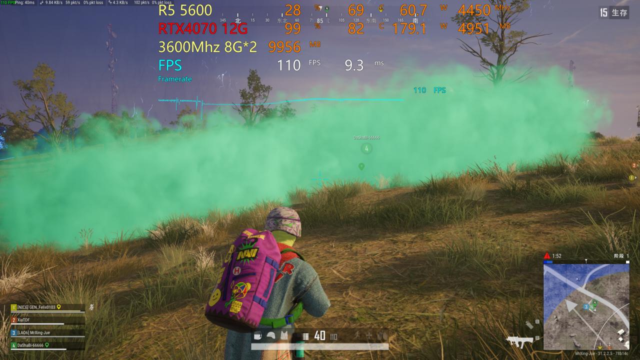 然後是人數攀新峯的絕地求生,4K 三高畫質、110渲染比例下,幀數如下: