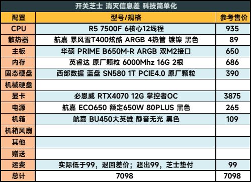 總之,希望這套6098元的4070配置,給裝機的各位提供一個思路!