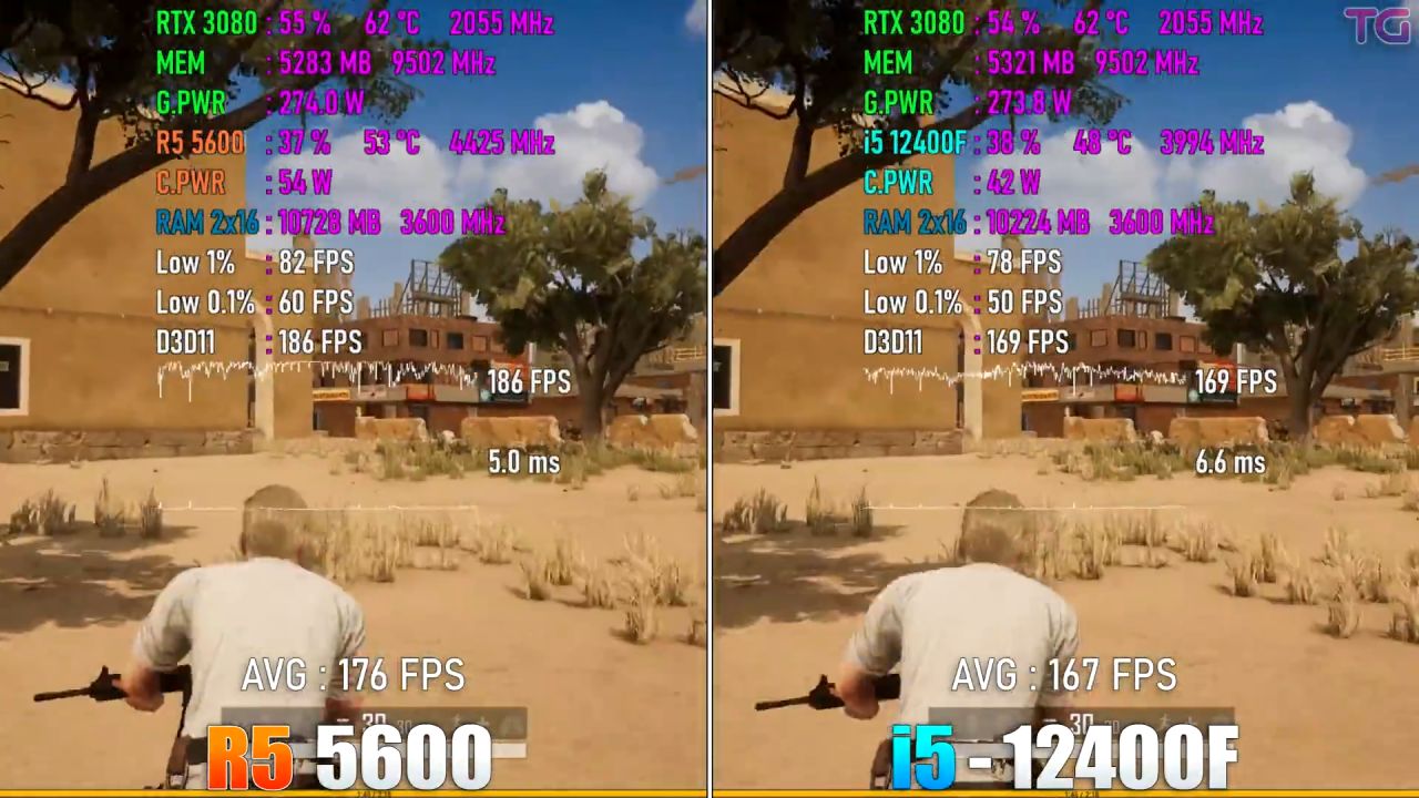 R5 5600對標i5 12400F的CPU,得益於英特爾擠牙膏,遊戲性能上也可以和134、14400F掰掰手腕: