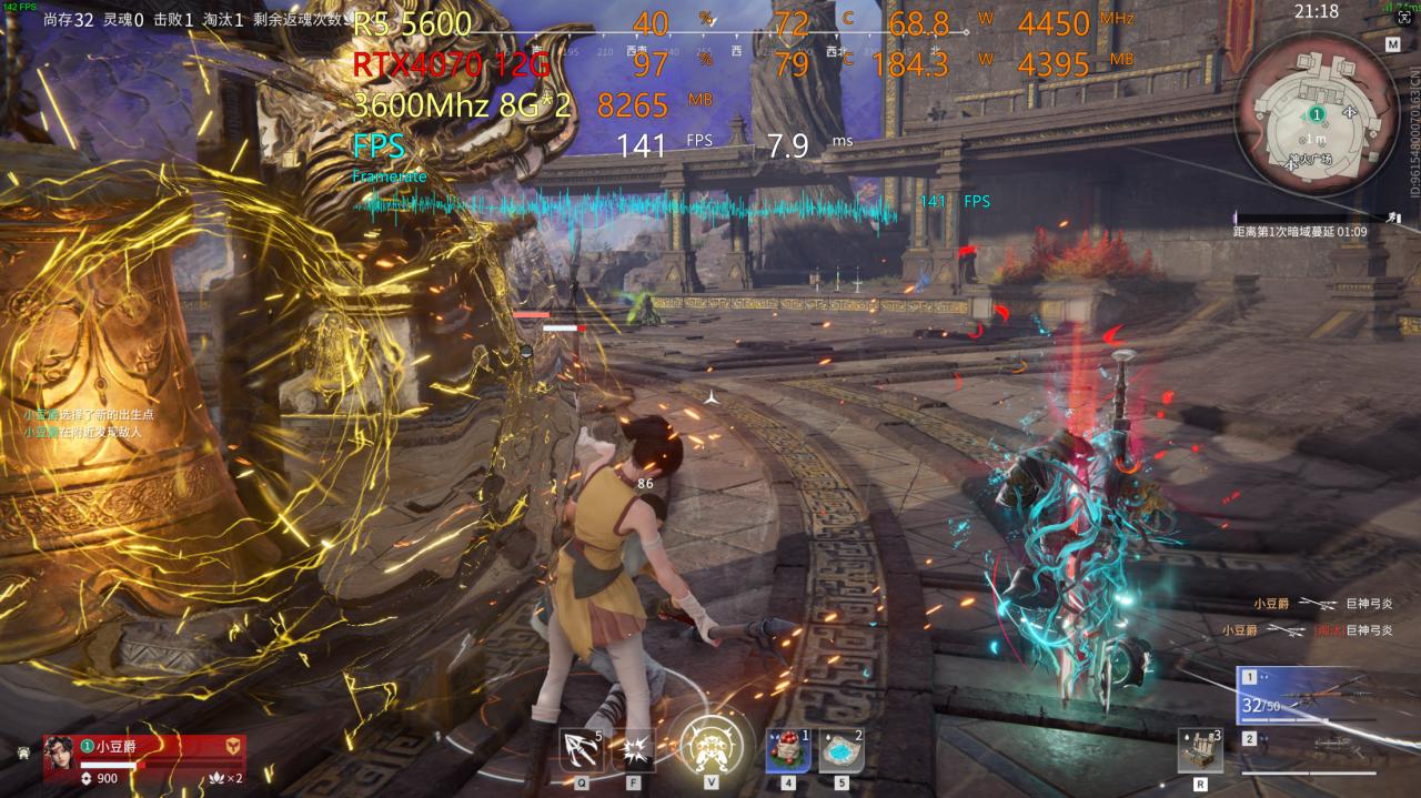 最後是永劫無間,4K分辨率默認高畫質預設,人多放技能打架140幀上下: