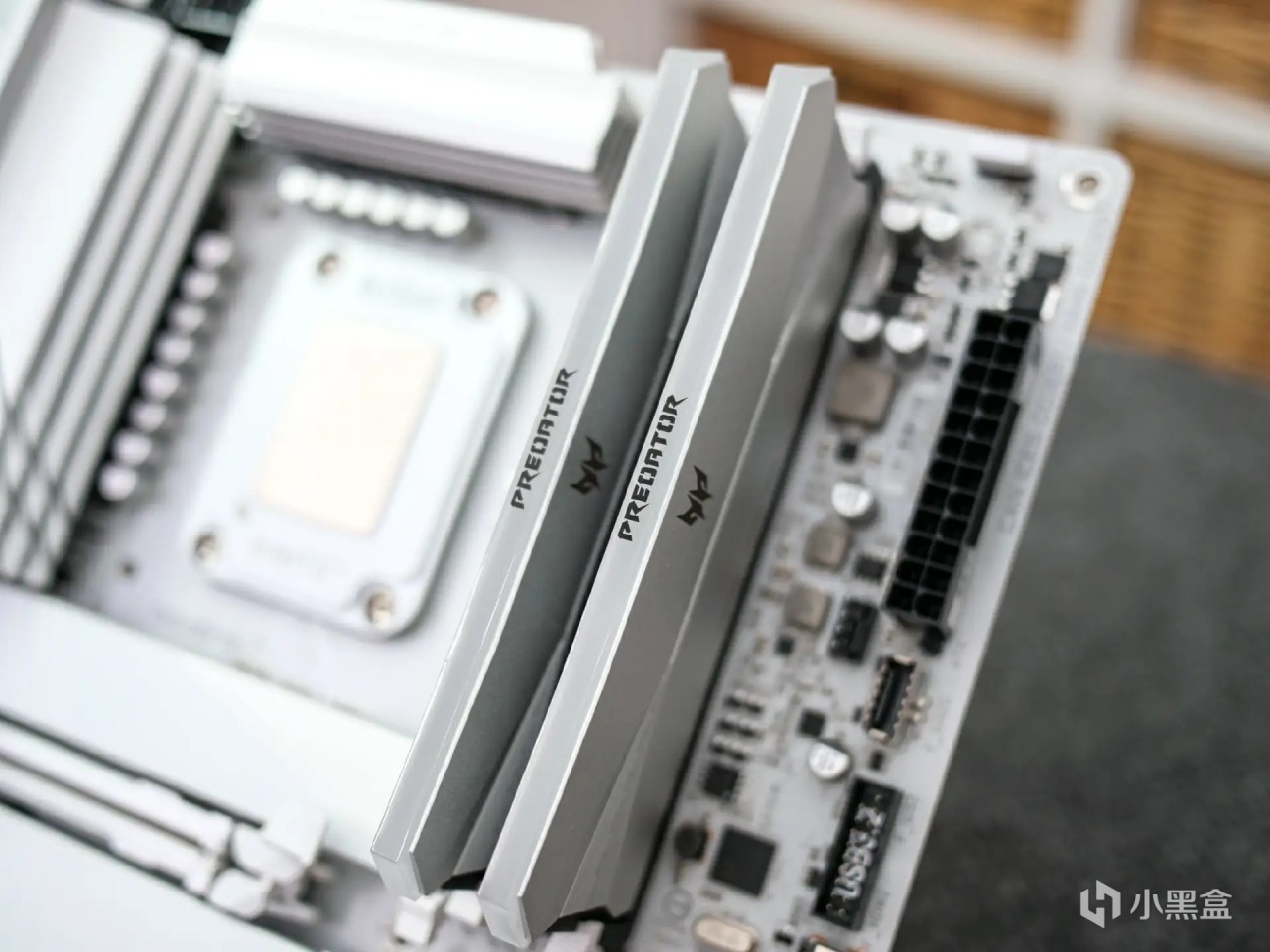 內存是來自宏碁掠奪者最新推出的Hera影鋒內存,XMP6800規格的32GB套條,因爲是白色海景房,這裏選擇的是冰戟銀顏色版。