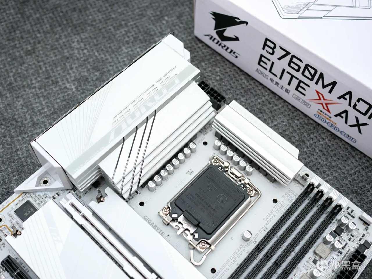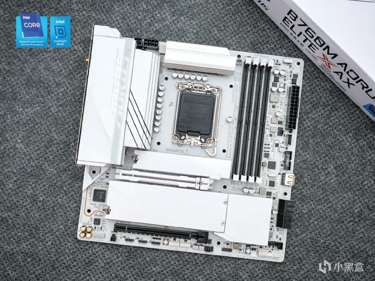 主板使用的是技嘉B760M冰雕X主板,白色PCB搭配銀白色散熱裝甲,超高顏值十分適合白色海景房主題裝機,也是目前市面上爲數不多的純白色主板。