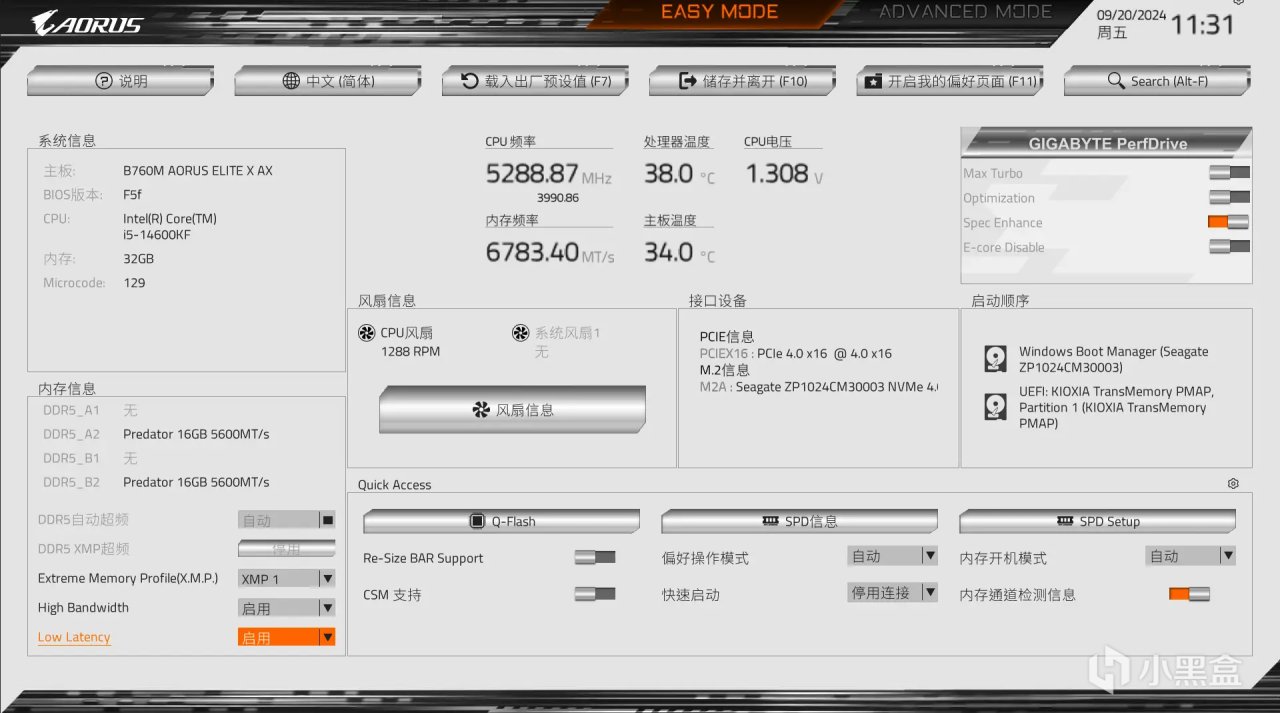 技嘉B760M冰雕X主板搭載了技嘉DDR5內存“高帶寬低延遲”黑科技效果,只需要在主板BIOS中開啓就能提升內存性能。