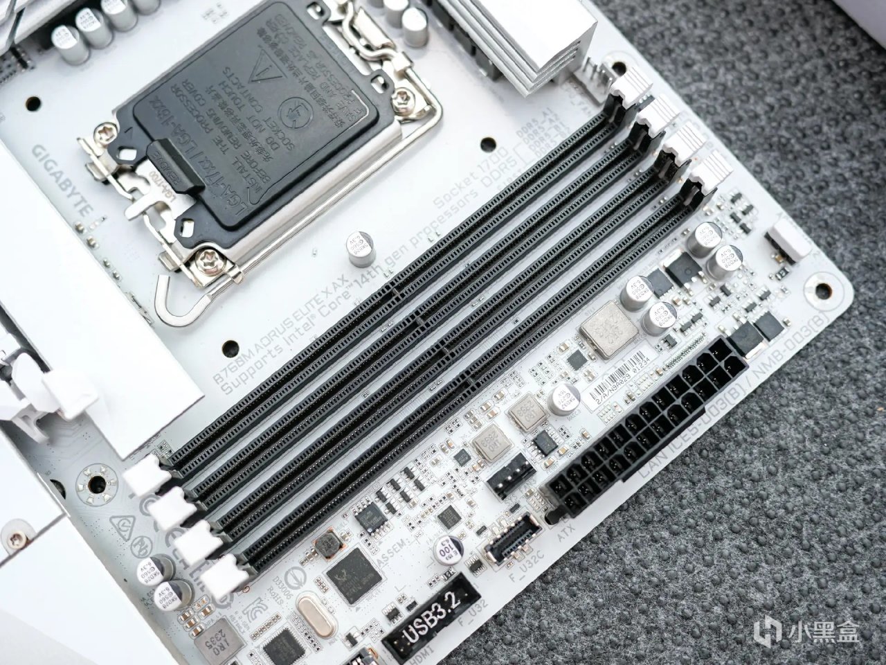 四DDR5內存插槽,最大支持192GB,最高可以支持8266MHz+的內存OC頻率。這代技嘉主板是在DDR5內存頻率支持上做的最好的廠商,通過隔離佈線和背鑽孔技術搭配BIOS內置的低延遲高帶寬黑科技,不管是手動超內存還是XMP頻率下內存效能提升都很容易。