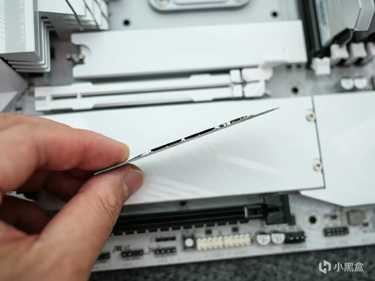 主板配有2個M.2固態硬盤插槽,均支持PCIe 4.0x4,都配有免螺絲設計的散熱裝甲,方便拆裝固態。