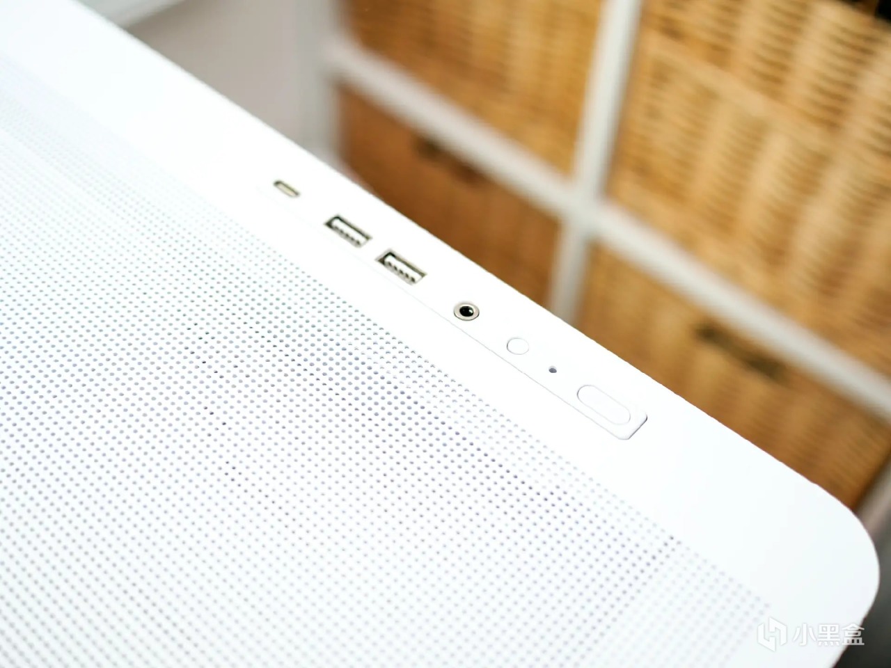 機箱的IO開關等位於機箱頂部,包含了電源鍵、重啓鍵,一個3.5mm音頻接口,2個USB-A口和1個Type-C接口。