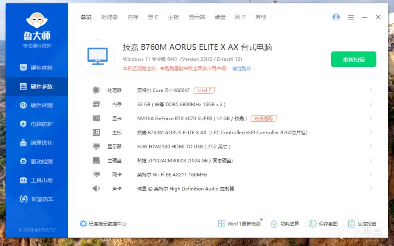爲了跟主板搭配,顯卡選擇的是技嘉RTX 4070 SUPER AERO OC 12G雪鷹,搭配i5-14600KF,基本可以做到2K分辨率下游戲通喫,同時還能滿足部分遊戲4K暢玩。另外RTX40系顯卡強大的AI算力,用它來跑一些本地化的AI應用也都毫無問題。