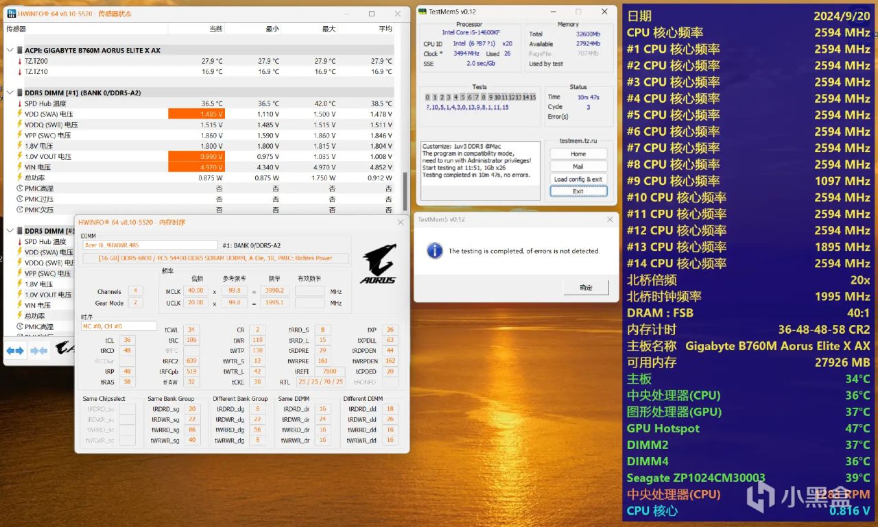 當然宏碁掠奪者Hera內存使用的是嚴選原廠海力士A-die顆粒,在XMP6800CL32低時序規格外還有出色的超頻性能,同時技嘉這代主板的DDR5內存超頻性能一樣出衆,我也是輕鬆在這套配置下內存超頻到了8000MHz,並且在沒有加外置散熱的情況下順利過測。