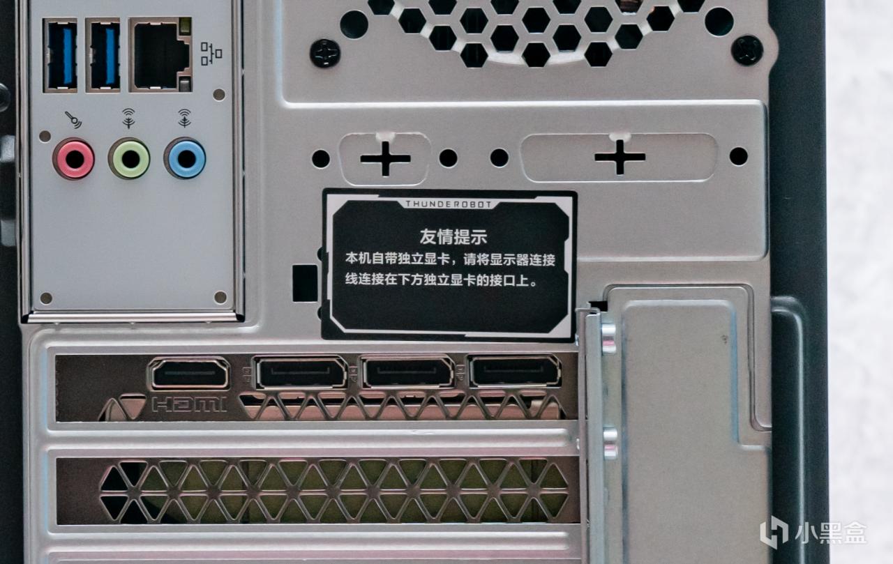 显示器连接显卡的1个HDMI 2.1+3个DP 1.4接口,才能发挥这台机器的显卡性能啊!各位别插错。