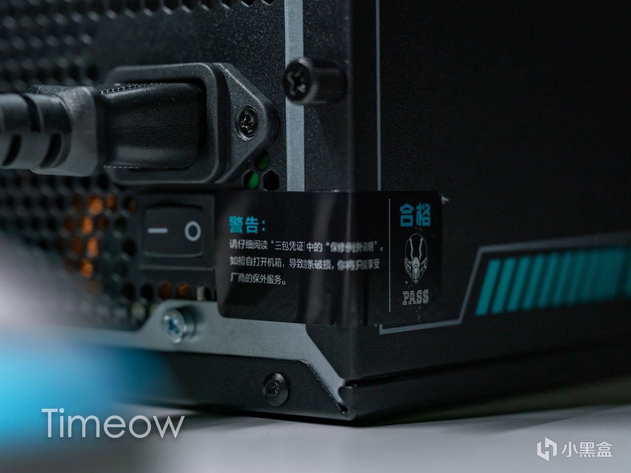 同时,侧边格栅和侧板密集的开孔,也是整机的散热进气口了,空气从侧边进气口进入、再从后方通过风扇排出,应对这样的CPU和显卡,实际的散热效果也已足够。