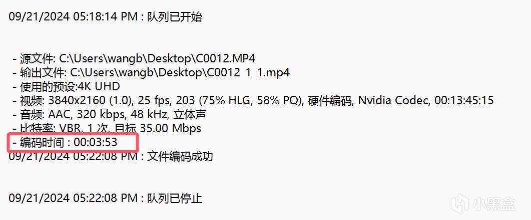 雷神黑武士·猎刃使用硬件编码,耗时3分57秒。
