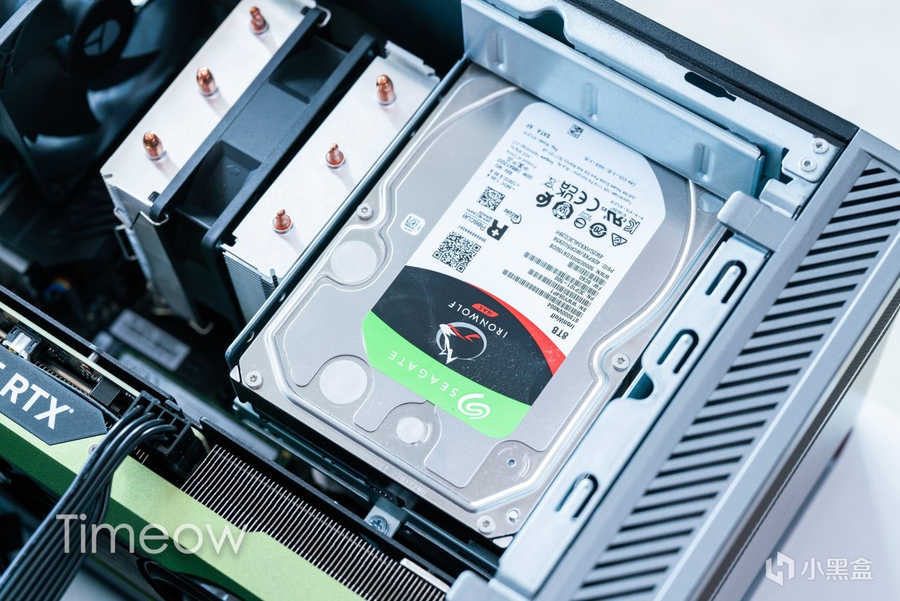 散热器侧方的硬盘托架,可以安装一块3.5寸机械硬盘,而它的背面可以安装2.5寸的盘。