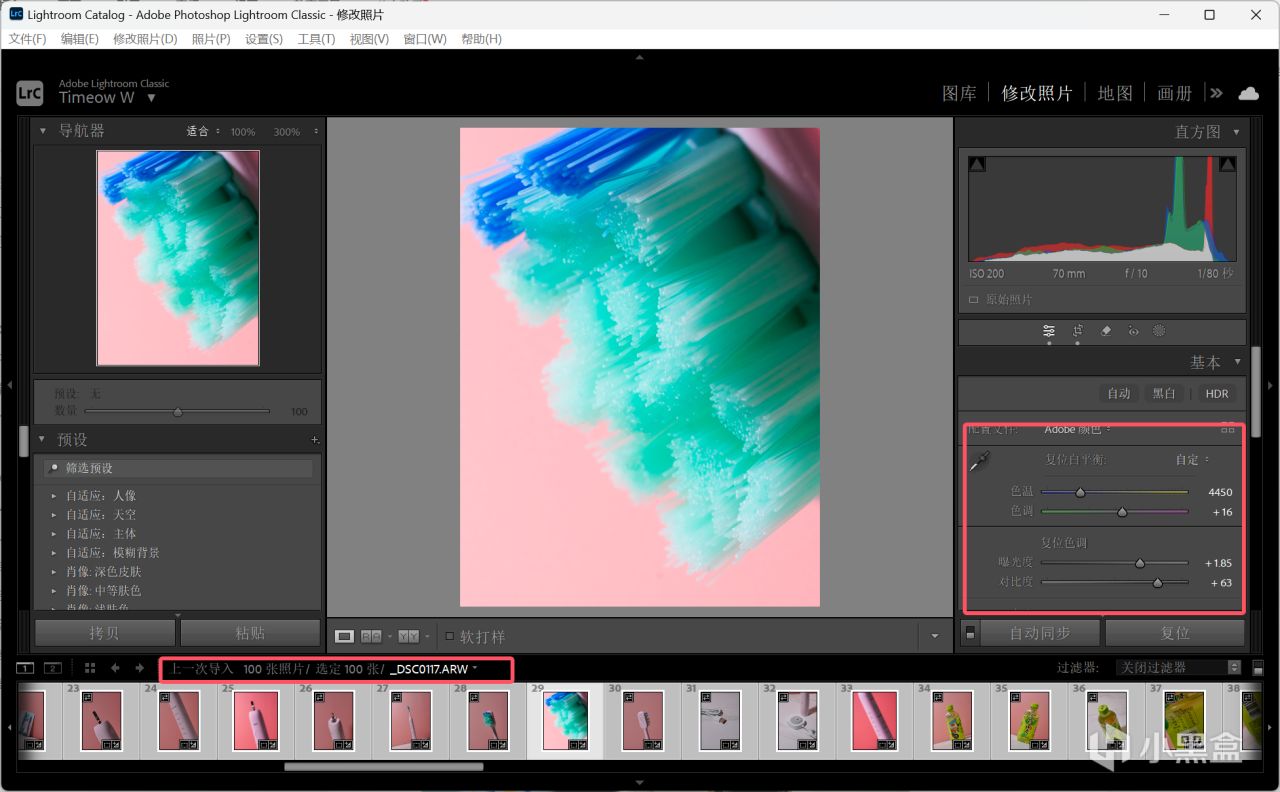 Lightroom软件里,我将100张4300万像素的RAW照片导出为同等尺寸的JPG格式,看一下速度。