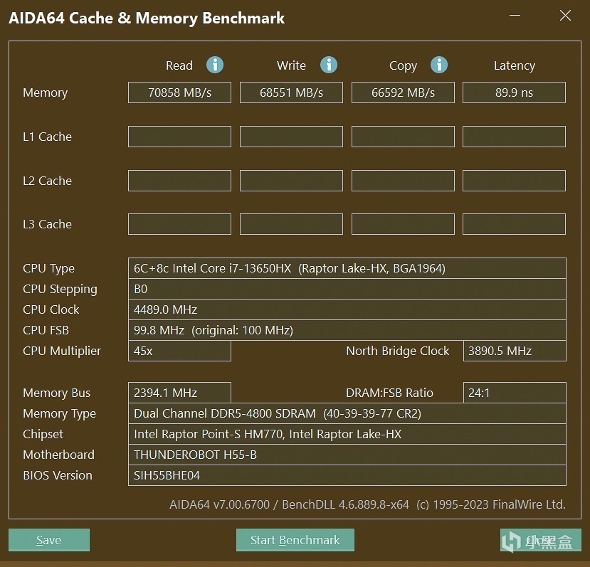 可能是CPU限制的原因,这两根5600MT/s的内存,只能运行在4800MT/s的频率下,所以性能表现不够优秀,不过即便如此,影响也不大,因为这款电脑用的是独立显卡,在游戏性能上对内存频率不敏感,而且这样的内存性能应对办公需求也是绰绰有余了。