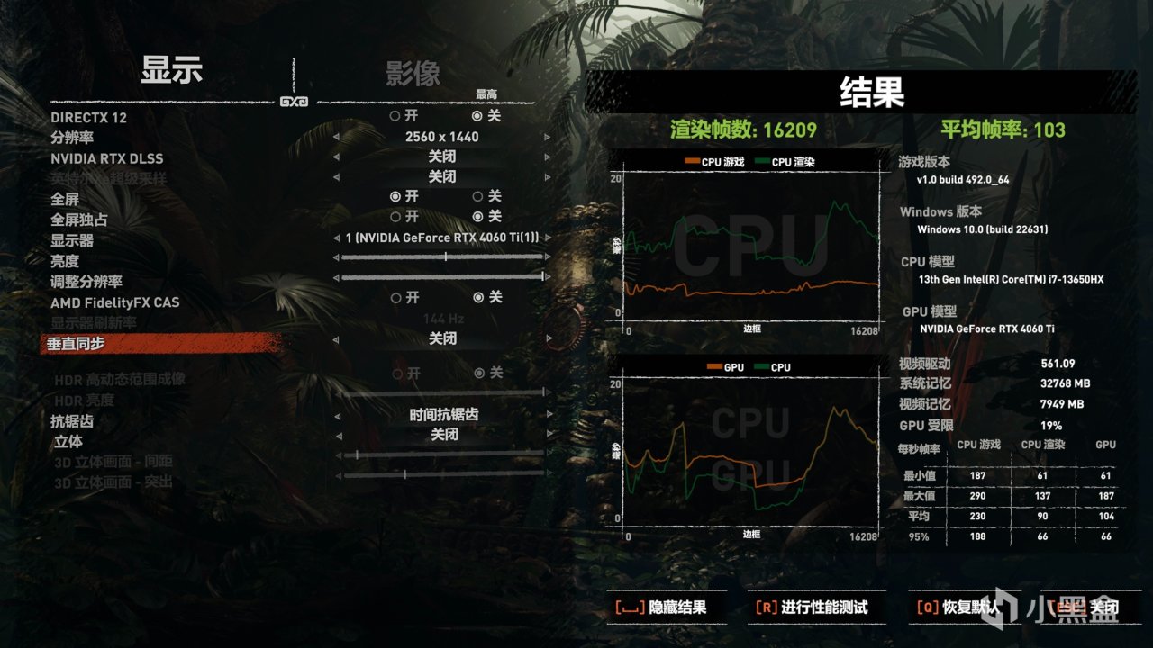 将分辨率设为为2K,使用预设的最高画质,雷神黑武士·猎刃可以跑出103的平均帧率!电竞级丝滑表现基本达到咯!