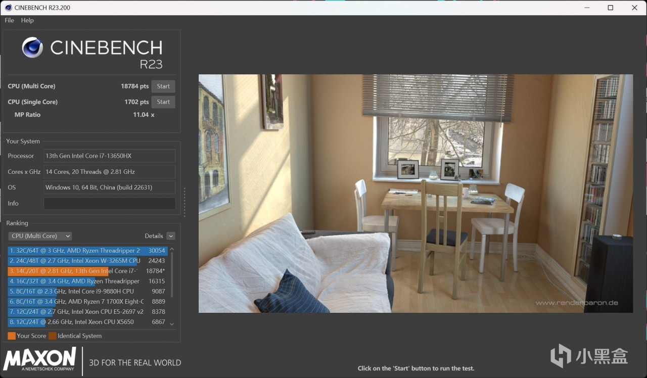测试中,雷神黑武士·猎刃搭载的13650HX多核跑分18784,单核跑分1702。多核跑分成绩远超线程撕裂者,达到了不缩缸默频14900K的50%以上,表现同样不错。