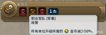 1掛卡一波升兵。在解鎖“僱傭兵”市政前攢幾百塊錢,解鎖後掛上“職業軍隊”政策卡,把手裏的兵一波全升級,能顯著提升即時戰力,爲征戰開闢/延長窗口期。