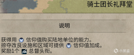 1騎士團長禮拜堂,買兵。這是市政區的一種二級建築,有了他就能用信仰值買兵。這是宗輔文明(例如毛子)的主要兵源。掠奪還額外產出信仰,又可以買兵,越打越肥,非常逆天。