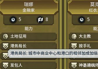 5總督瑞納。點出“港務局長”和“稅務員”技能,放到港商套的城市,能讓該城產出高額金幣。
