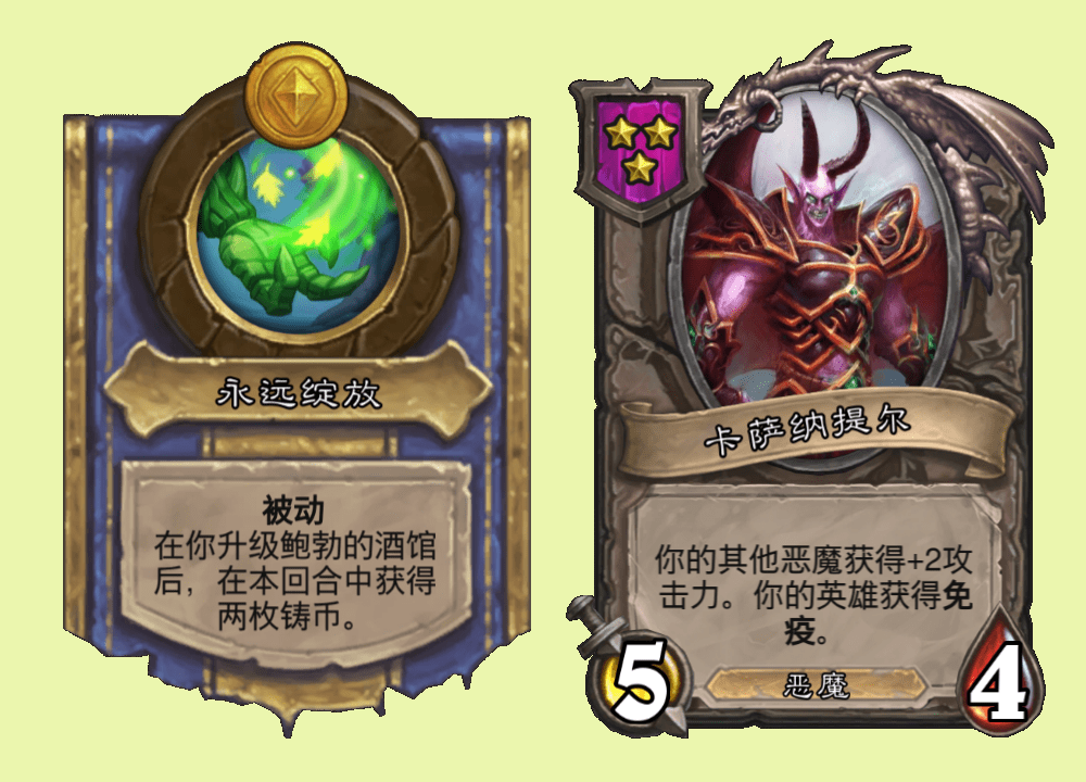 炉石传说这次的平衡补丁,不仅有天梯模式的大量卡牌调整,酒馆战棋里也有大量的英雄得到了调整和重做,比如对曾经的烂分王古夫技能进行了调整,而重做的英雄技能里,巫妖巴兹亚尔尤其有意思,她可能是目前酒馆里唯一一个第一回合就能跳到二本的英雄。