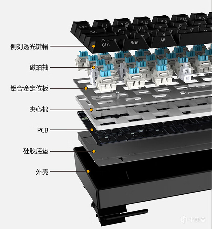 ND63 PRO轴体采用的是OKT天青磁轴,由POK轴心、POM上盖、永磁铁、19mm长弹簧、导光柱、POM下盖,这六个部分组成,整体手感不错。(ND63是磁珀轴)
