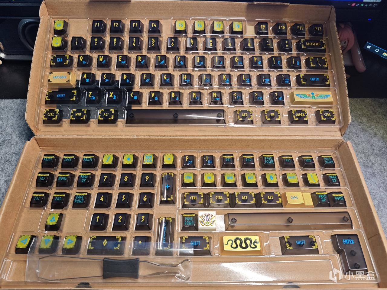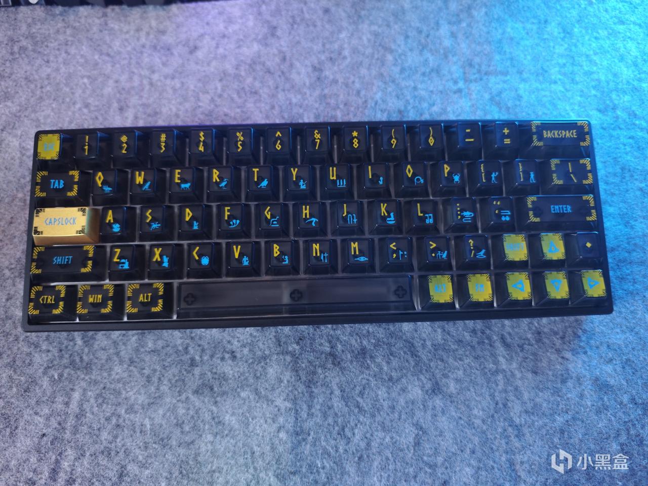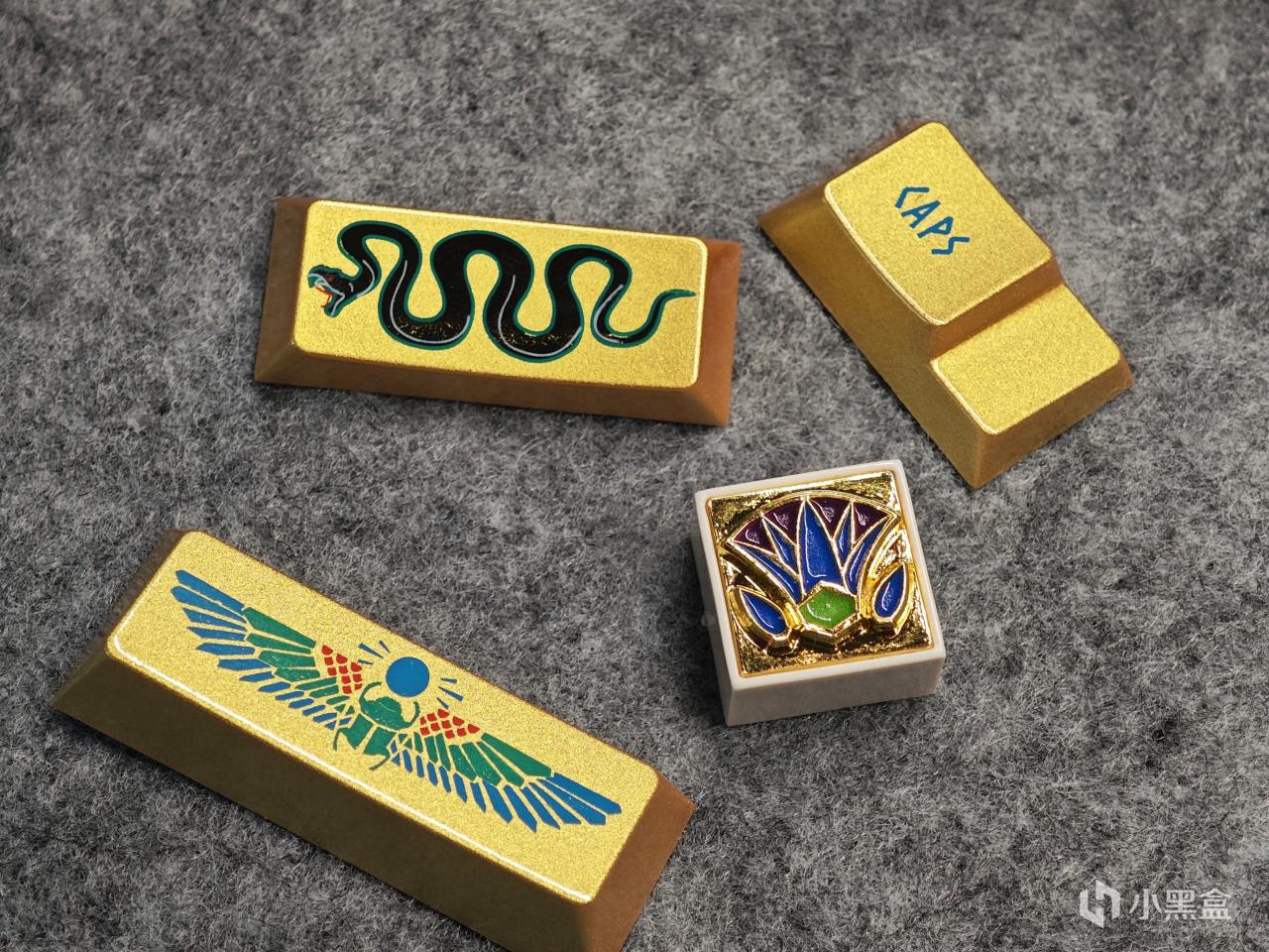 键帽的风格是埃及主题,上面有金色烤漆+多色图案,字符改的像埃及古代的文字