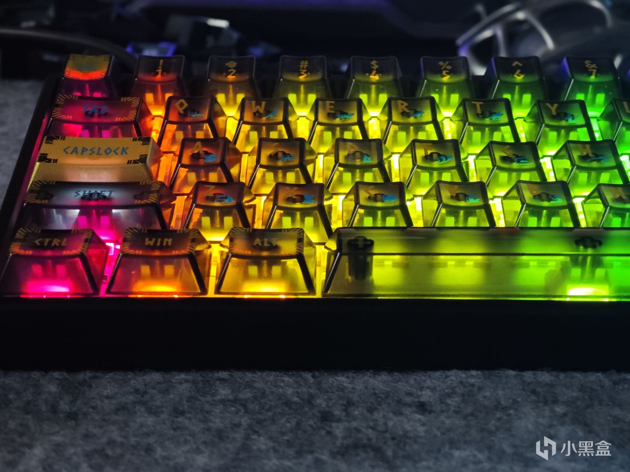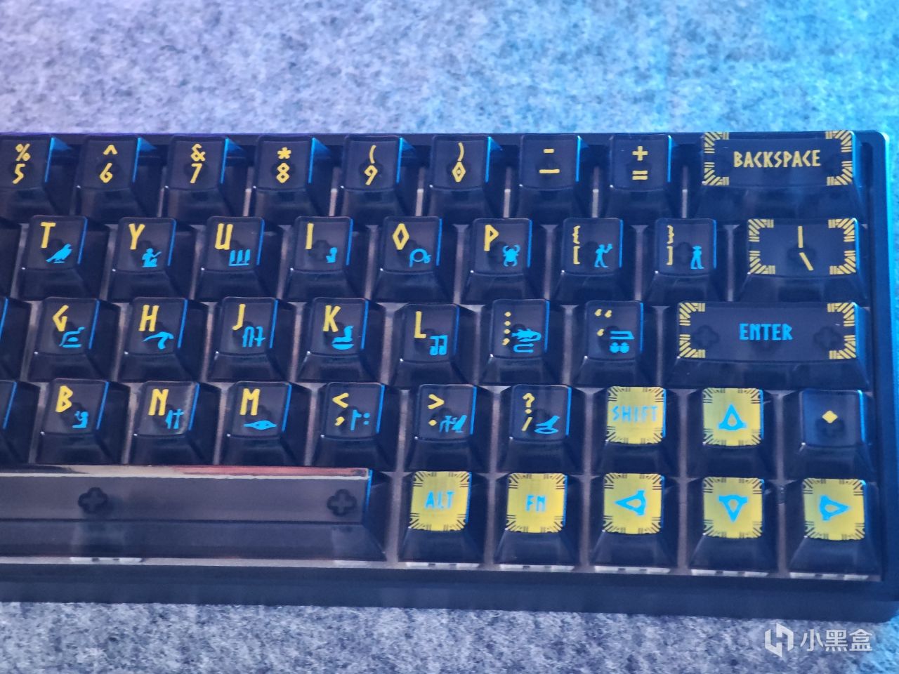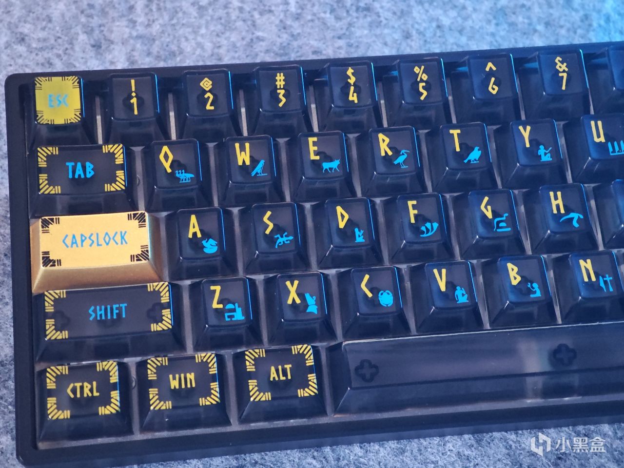 键帽的风格是埃及主题,上面有金色烤漆+多色图案,字符改的像埃及古代的文字