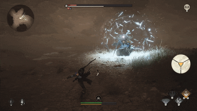 面對敵人的“紅光技能”時,玩家用重擊實現完美彈反能觸發彈刀反擊;而在普攻連招最後一段、特殊技後抓住能量滿格在輪盤亮起的“瞬間”切換角色,能疊加入場角色的支援技能,並擁有無敵幀;值得注意的是,不同角色的技能槽相互獨立,彼此配合能提升輸出效率,比如配合弓手具有凍結效果的終結技,玩家能爭取到更多輸出時間。