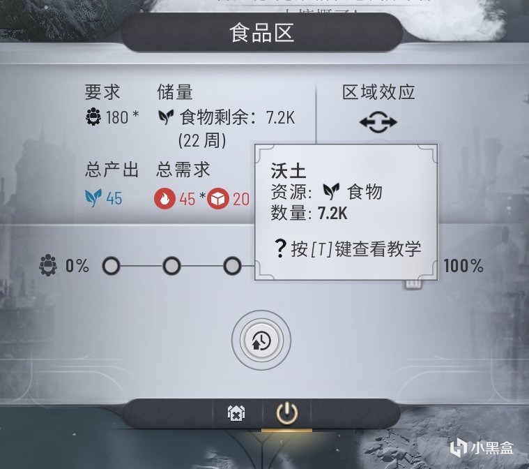 我们来看食品区,图中出现一些,种子发芽状的小图标,这代表我们可以在这上面建立食物区