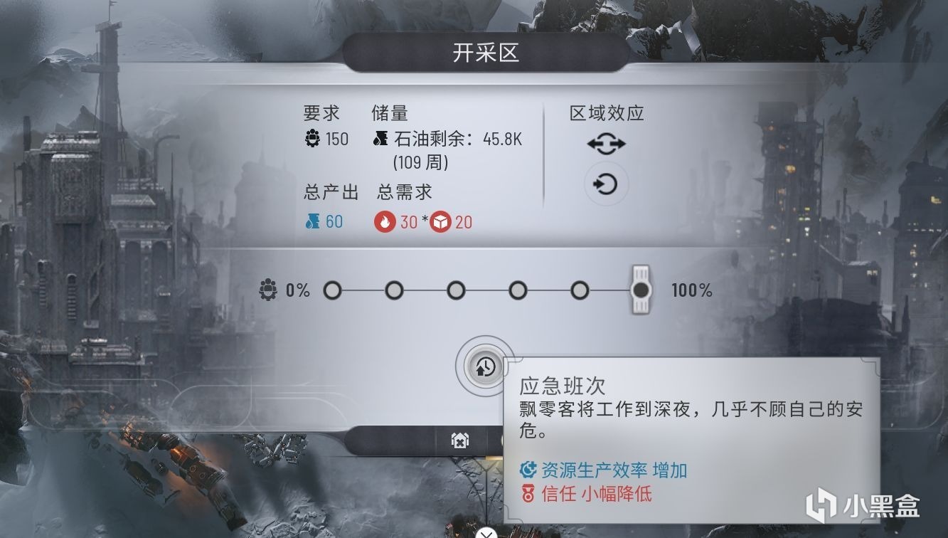 同时,这不像一代,资源储备站随便建立,枢纽是有着各种效果的,如图,只要满足三个蓝色栏,就可以减少劳动力要求,至于其他枢纽,就等各位探索啦