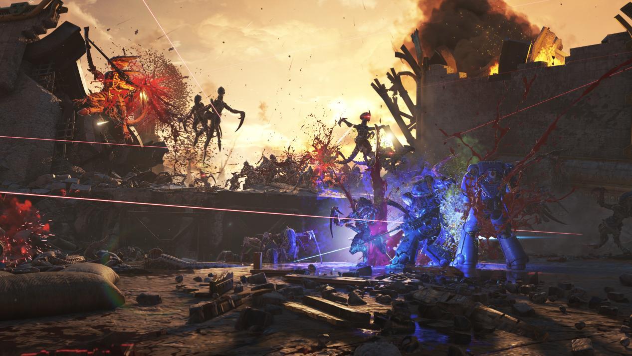 在整體偏灰的色調加持與相適性極佳的色彩搭配下,每一片裝甲的金屬反光、每一枚炮彈爆炸時的漫天塵土都清晰可見,畫面要素繁多,但不雜亂;戰場內容充實,但不過分飽和。再搭配上恰到好處的去UI化設計,這讓本作實現了“電影化”質感,甚至把通關流程直接當做是一部戰錘主題的科幻電影來觀看都毫不突兀。