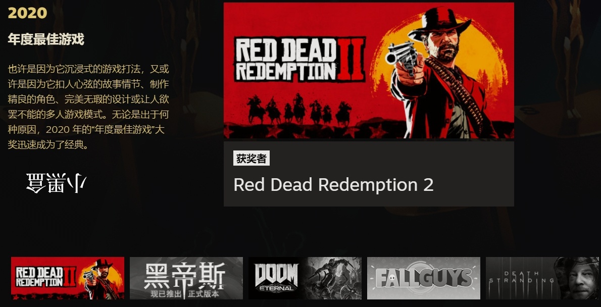2020 年度最佳遊戲《荒野大鏢客 救贖2》
